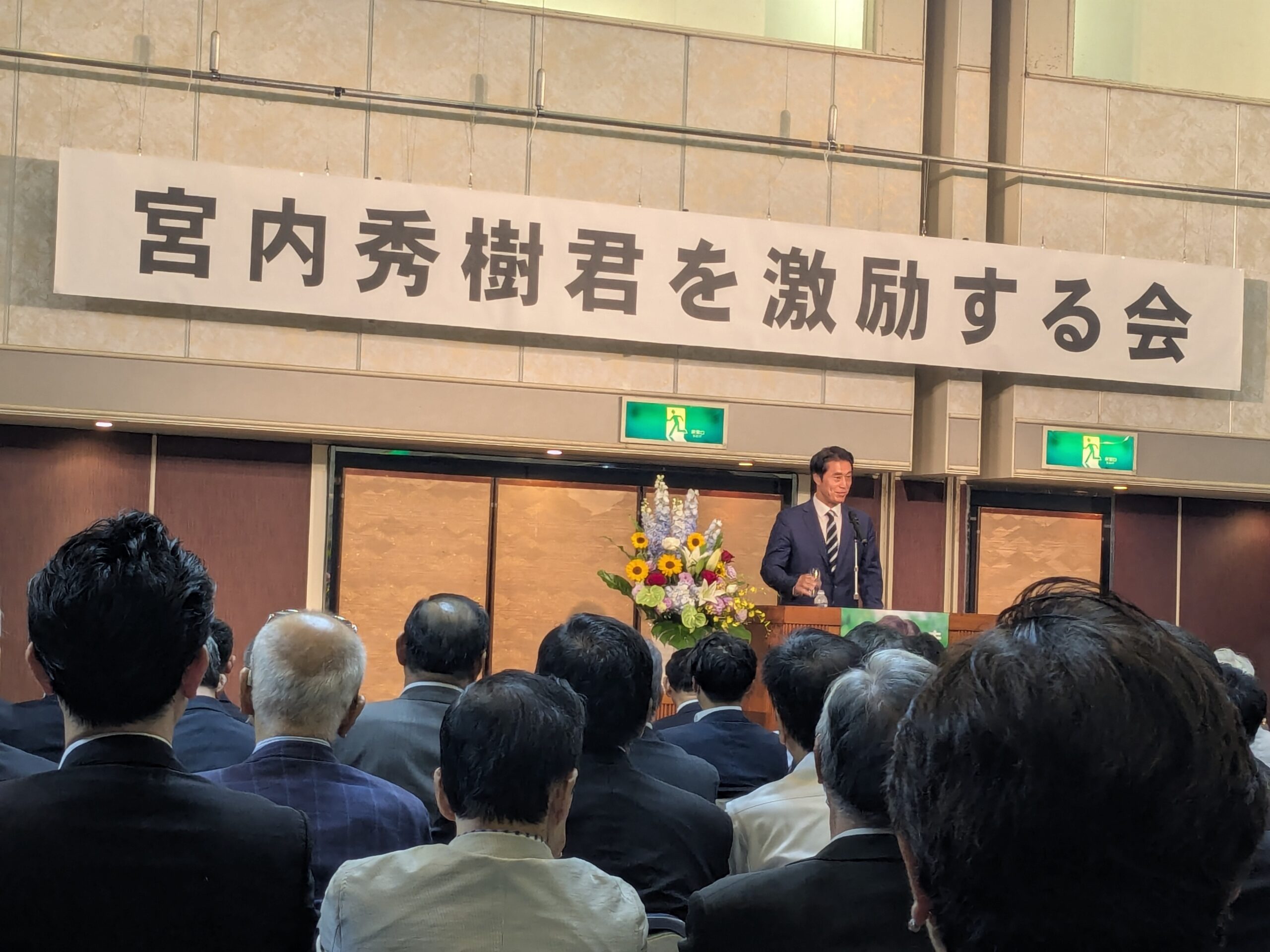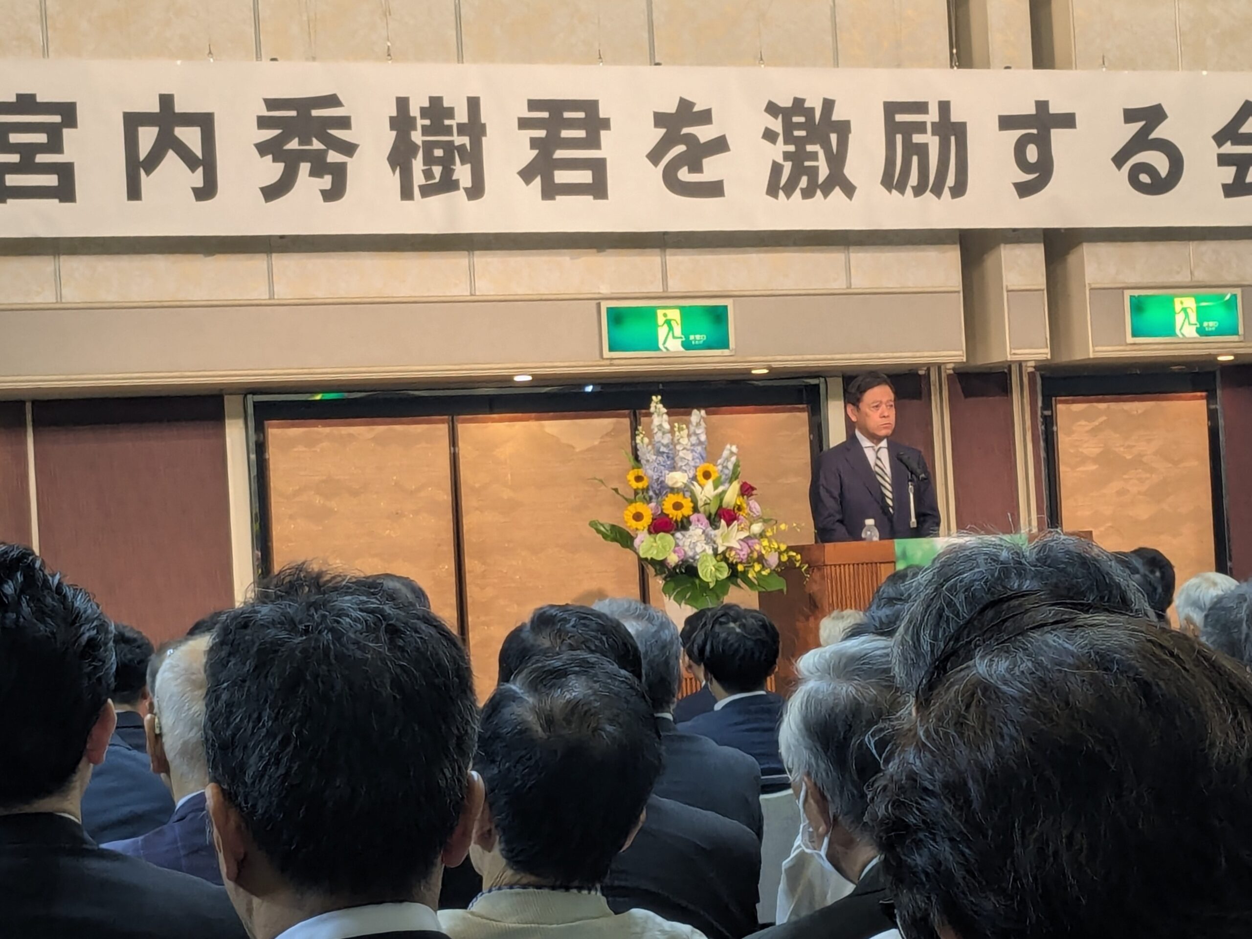お知らせ一覧 印刷する 議員関係 ・日時 令和7年6月21日(金) 11:00 ・場所 福岡リーセントホテル 宮内秀樹衆議院議員「宮内秀樹君を激励する会2025」に、植村理事、古屋敷宗像支部支部会員、水上宗像支部支部会員、須ノ内宗像支部支部会員が出席しました。